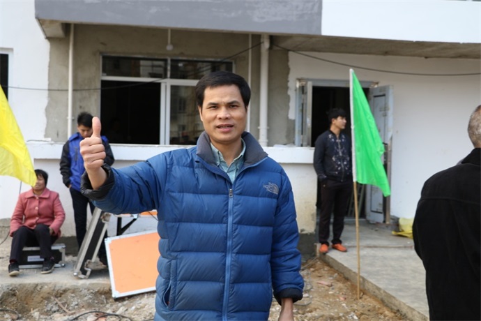一位貧困戶高興的豎起了大拇指