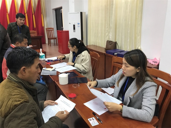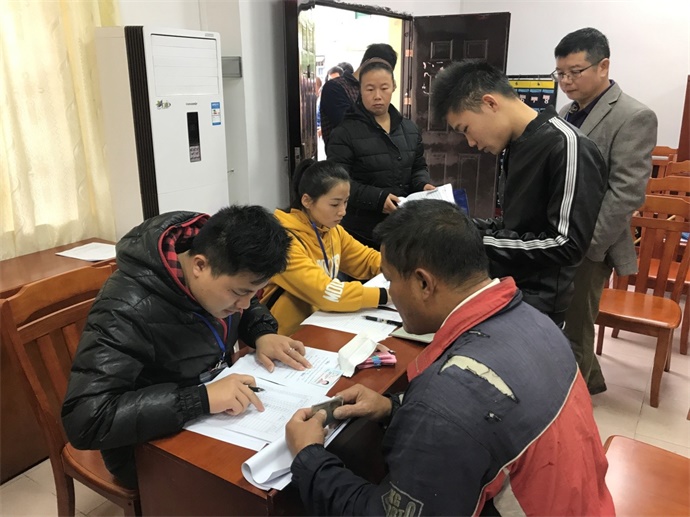 工作人員現(xiàn)場為貧困戶解說并讓其填寫交房確認(rèn)書