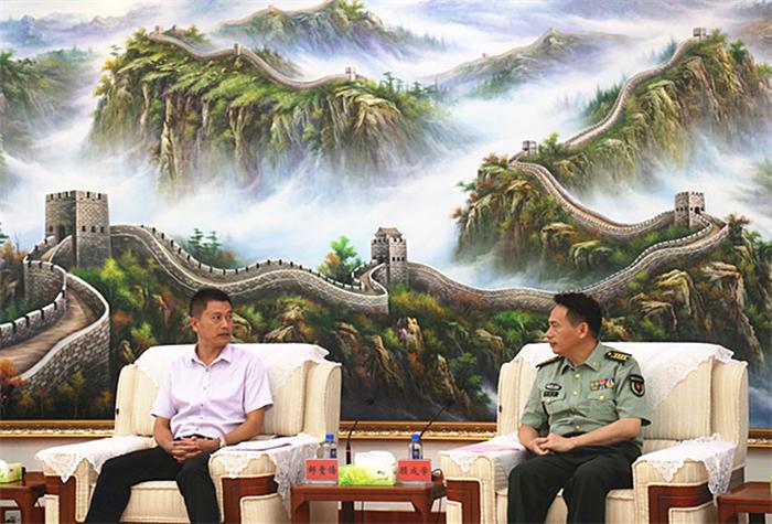圖為城投集團(tuán)董事長鄒貴惕與賀州軍分區(qū)首長顧成學(xué)親切交流