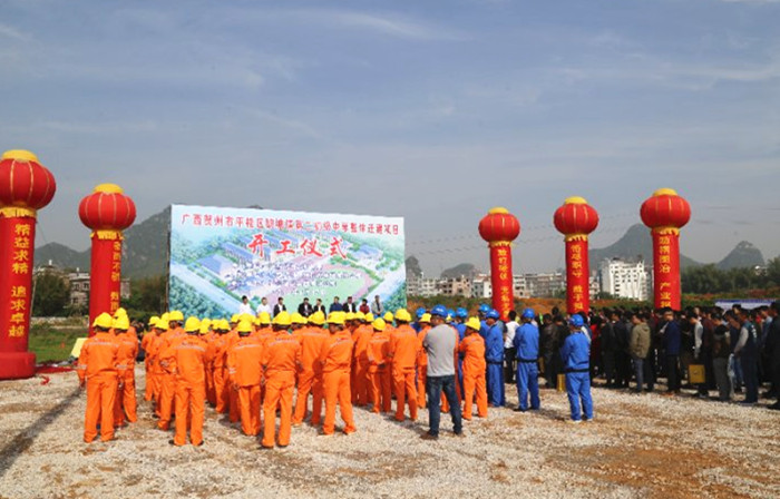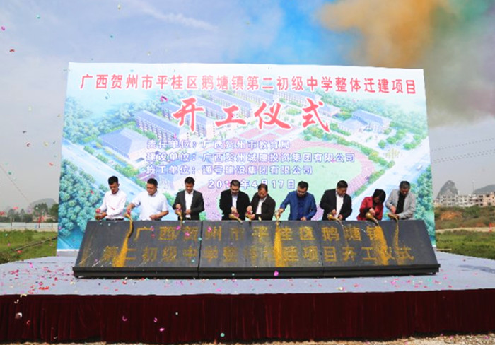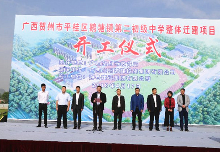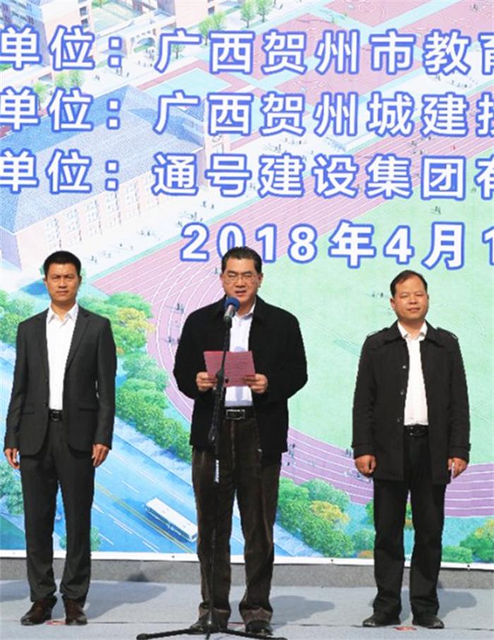 賀州市教育局副局長羅政(左二)主持項目開工儀式