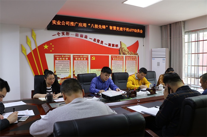 4月28日上午,實業(yè)公司黨支部召開黨員學(xué)習(xí)大會,推廣應(yīng)用“八桂先鋒”智慧黨建手機APP,黨支部書記、公司執(zhí)行董事柳國忠同志,公司副總經(jīng)理湯偉忠同志、陳書泉同志及全體黨員參加了會議。