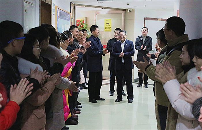 發(fā)布時(shí)間:2019-02-12 作者:文/湯彩燕;圖/許浩 來(lái)源:本站原創(chuàng) 審核:梁輝露新年伊始,萬(wàn)象更新。2月11日是春節(jié)假期后上班第一天,處處洋溢著節(jié)日的喜慶。賀州市副市長(zhǎng)楊育智一行到城投集團(tuán)看望集團(tuán)領(lǐng)導(dǎo)班子、集團(tuán)總部人員,并深入各子公司親切看望在一線工作的員工,向大家致以新春的問(wèn)候和祝福。
