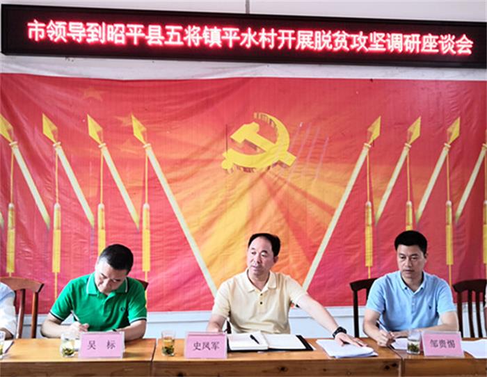 5月25日,市委常委、副市長史鳳軍利用周末休息時間前往城投集團(tuán)扶貧聯(lián)系點昭平縣五將鎮(zhèn)平水村,通過聽取匯報、實地察看、走訪入戶、召開座談會等方式調(diào)研脫貧攻堅工作。昭平縣縣委書記劉飛國,城投集團(tuán)黨委書記、董事長鄒貴惕,市縣扶貧辦領(lǐng)導(dǎo)陪同調(diào)研。