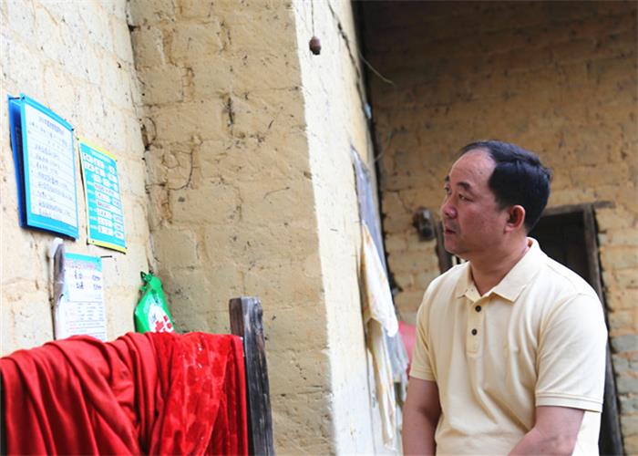 史鳳軍進(jìn)村入戶時認(rèn)真查看脫貧攻堅精準(zhǔn)幫扶聯(lián)系卡