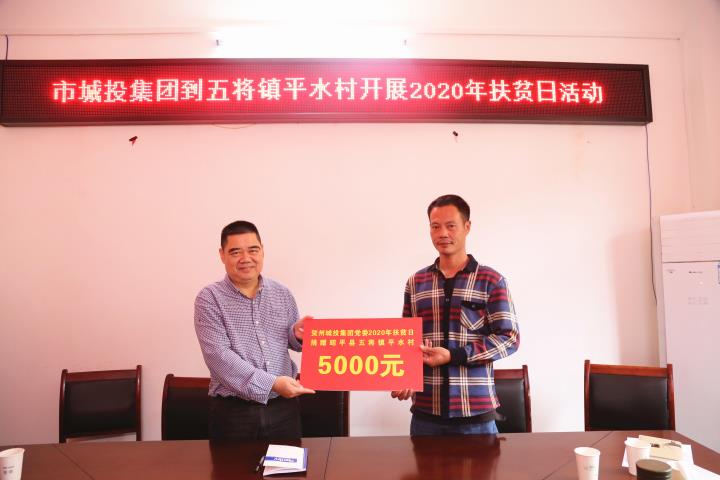 當(dāng)天還開展了2020年扶貧日活動,蒙金昌代表集團黨委為盤石村、平水村送上集團干部職工捐贈的扶貧愛心款共計10561.6元。