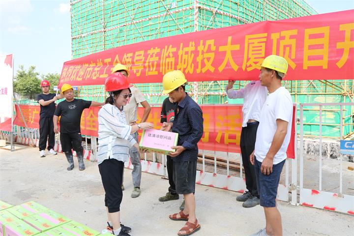 活動(dòng)中,黃小靈深入了解城投大廈項(xiàng)目建設(shè)情況,詢(xún)問(wèn)一線(xiàn)工人工作和生活情況。她指出,作為城市建設(shè)者,不管是烈日當(dāng)頭還是寒風(fēng)冷冽,他們始終堅(jiān)守在第一線(xiàn),非常感謝企業(yè)工人為城市發(fā)展做出的貢獻(xiàn)。作為業(yè)主和施工單位,要落實(shí)好安全生產(chǎn)責(zé)任制,加強(qiáng)安全生產(chǎn)檢查,做好防汛防暑工作,平日多了解和關(guān)心一線(xiàn)工人身體健康情況,為他們營(yíng)造舒適的工作環(huán)境。黃小靈與一線(xiàn)工人親切交流,感謝他們每日的辛勤付出,叮囑他們要注意身體、自我調(diào)節(jié),以更好的狀態(tài)投入到工作中,并為他們送上王老吉等防暑降溫清涼飲料。