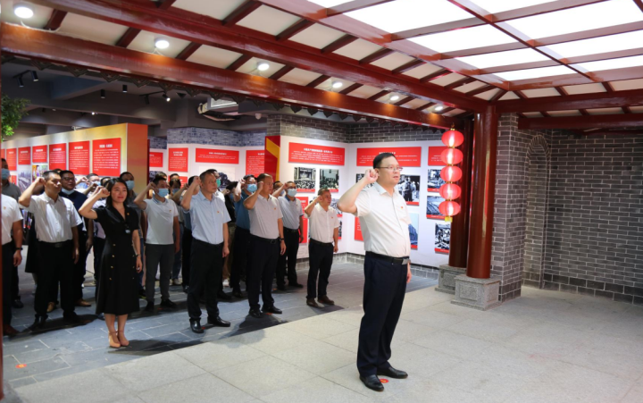 在展覽館內(nèi),集團黨員干部面向黨旗,緊握右拳再次重溫入黨誓詞,向黨和人民表達了對黨的忠誠、為共產(chǎn)主義事業(yè)奮斗終生的決心。