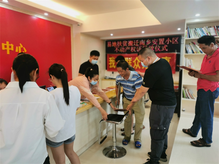 “原來住在山溝溝里,干啥都不方便,現(xiàn)在趕上了國(guó)家易地扶貧搬遷的好政策,讓我一家子變成了‘城里人’,今天又領(lǐng)到這紅本本,這下我們就更踏實(shí)了!”5月31日,正贏實(shí)業(yè)公司和八步區(qū)移民局在南鄉(xiāng)鎮(zhèn)扶貧移民安置小區(qū)黨群服務(wù)中心舉行不動(dòng)產(chǎn)權(quán)證發(fā)放儀式,搬遷群眾邱文漢妻子在接到全鎮(zhèn)第一本易地扶貧搬遷安置房不動(dòng)產(chǎn)權(quán)證書后抑壓不住心中的喜悅,動(dòng)情地道出了這番肺腑之言。
