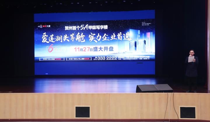 推介會(huì)上,舉辦方隆重介紹了由賀州城投集團(tuán)自主投資建設(shè)的賀州首個(gè)5A甲級(jí)寫字樓城投大廈項(xiàng)目,重點(diǎn)介紹了城投大廈的市場前景、投資價(jià)值。目前,城投大廈已取得塔樓(1#、2#樓)的預(yù)售許可證,將于2021年11月27日舉行盛大的開盤活動(dòng)。