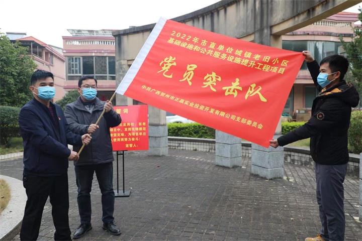 隨后,活動人員來到了賀州市檢察院生活小區(qū),該小區(qū)是正贏實業(yè)公司負責實施的賀州市2022年市直單位城鎮(zhèn)老舊小區(qū)基礎(chǔ)設施和公共服務設施提升工程項目其中一個老舊小區(qū)。在老舊小區(qū)現(xiàn)場,支部開展了黨員對標承諾活動,并成立了2022年市直單位老舊小區(qū)基礎(chǔ)設施和公共服務設施提升工程項目“黨員突擊隊”。柳國忠強調(diào),全體黨員要通過向身邊的優(yōu)秀黨員學習并從中確立標桿和榜樣,在項目建設中以黨員的標準嚴格要求自己,帶頭攻堅克難,沖鋒在項目一線,更好的為人民群眾服務。