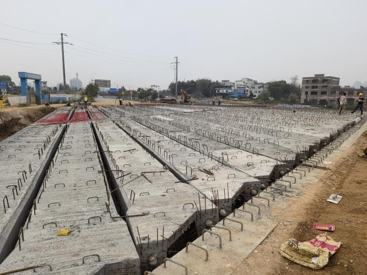 生態(tài)新城永康路永豐路工程橋梁工程項目是我市重點民生工程之一,現(xiàn)正在全力推進永康路育才河橋和黃田支渠橋的建設推進工作。截至目前,項目已完成投資1895萬元,完成永康路兩座橋梁的梁板架設施工,接下來將全力以赴開展橋面施工,以確保永康路兩座橋梁在3月底前通車,進一步緩解城區(qū)交通壓力。