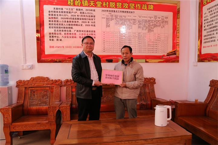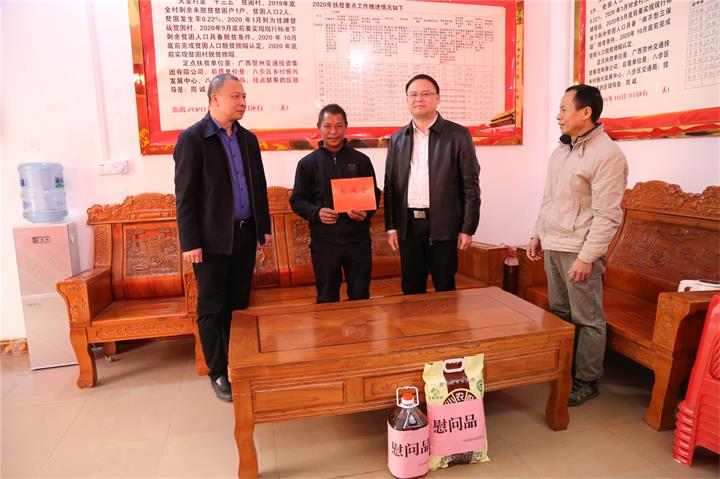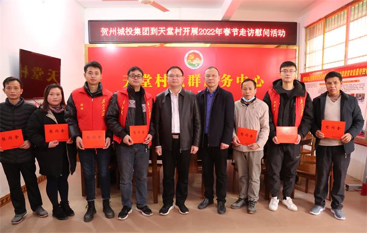 發(fā)布時(shí)間:2022-01-24 作者:圖/鄧永劍 文/劉 美 來(lái)源:本站原創(chuàng) 審核:鄧永劍新春佳節(jié)將至,1月21日,城投集團(tuán)黨委書記、董事長(zhǎng)黃俊,黨委副書記、工會(huì)主席梁輝露一行走訪慰問了幫扶聯(lián)系村桂嶺鎮(zhèn)天堂村村委干部、駐村工作隊(duì)員以及困難群眾,向他們致以新年的問候和美好祝愿,為他們送去溫暖和關(guān)懷。