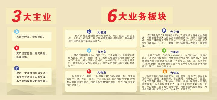 城投集團立足戰(zhàn)略布局,持續(xù)優(yōu)化布局結構,主責主業(yè)更加突出。2021年,根據(jù)市委部署要求,城投集團與原交投集團進行重組合并。合并后的城投集團定位為以承擔基礎設施投資建設、提供公共服務和產(chǎn)品、土地開發(fā)經(jīng)營利用為三大核心功能的經(jīng)營實體。根據(jù)三大核心功能定位,城投集團研究確定了“三大主業(yè)六大板塊”的發(fā)展思路,提出“大基建、大交通、大水務、大能源、大物業(yè)、大集采”等六大轉型發(fā)展新板塊,同步推進建筑材料貿易、賀州智慧停車、金融押運、小額貸款、特許經(jīng)營等輔助業(yè)務,支撐核心業(yè)務發(fā)展,做大現(xiàn)金流、做強企業(yè)實力、做優(yōu)企業(yè)資產(chǎn)。