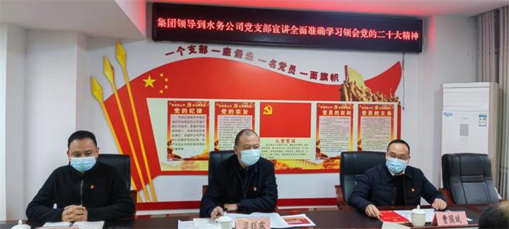 12月20日下午,集團黨委副書記、工會主席梁輝露到城投水務(wù)公司黨支部宣講黨的二十大精神。
