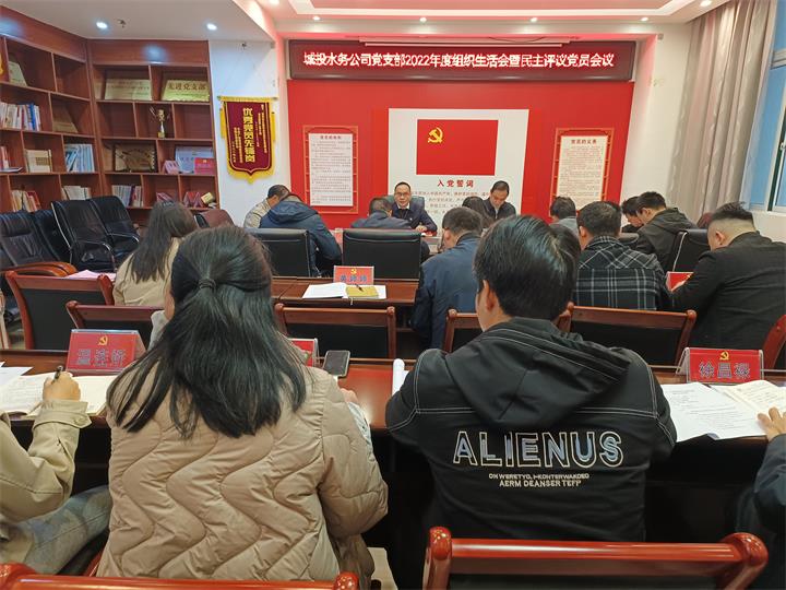 水務(wù)公司黨支部開展組織生活會(huì),會(huì)議報(bào)告了2022年度黨支部工作情況和查擺問題整改落實(shí)情況,并以黨支部書記帶頭作個(gè)人檢查剖析,各黨員圍繞組織生活會(huì)主題深入開展批評(píng)和自我批評(píng)的方式,要求支部黨員以此次組織生活會(huì)為新的起點(diǎn),繼續(xù)貫徹落實(shí)集團(tuán)黨委的決策部署,立足工作實(shí)際,積極擔(dān)當(dāng)作為,為全方位推動(dòng)集團(tuán)高質(zhì)量發(fā)展貢獻(xiàn)水務(wù)力量。