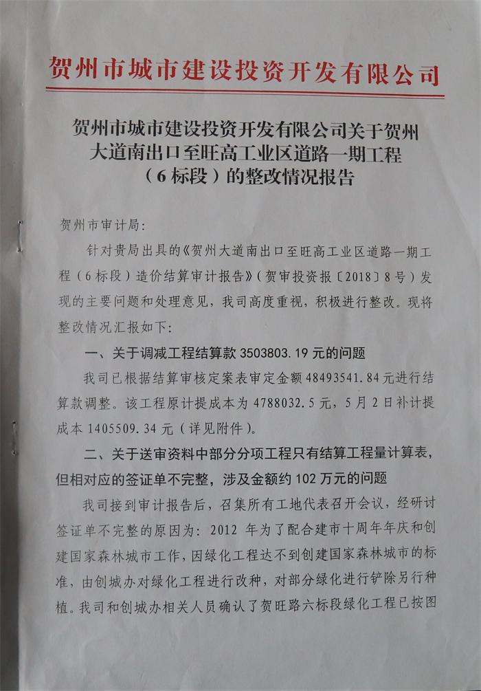 關(guān)于賀州市靈峰大橋工程建設(shè)項(xiàng)目竣工決算審計(jì)整改情況的報告2018-02-23