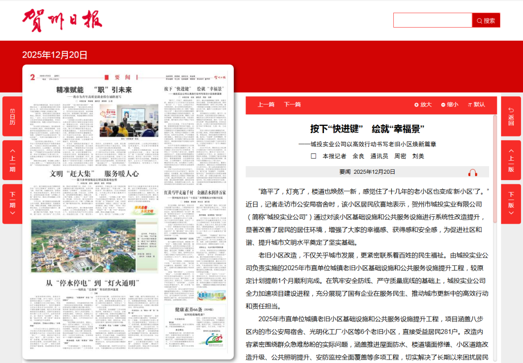 按下“快進(jìn)鍵” 繪就“幸福景”——城投實(shí)業(yè)公司以高效行動(dòng)書寫老舊小區(qū)煥新篇章2025-12-22