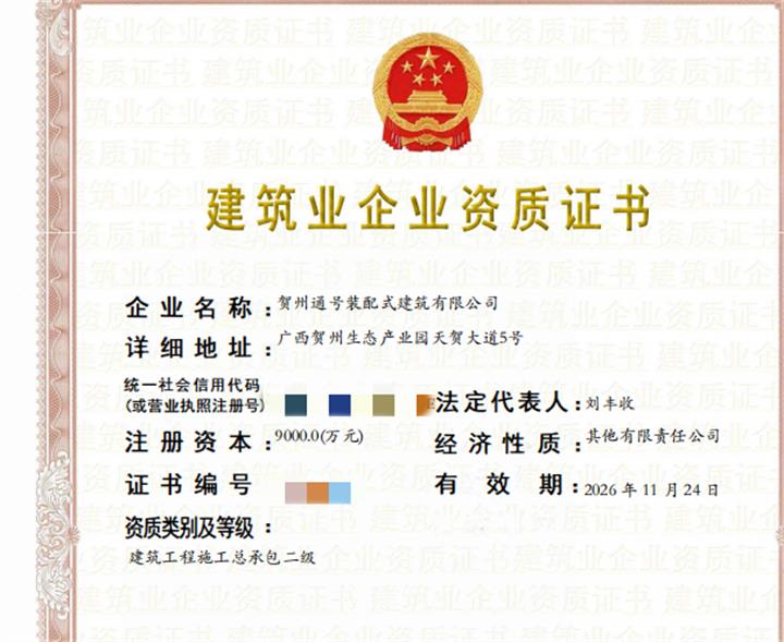 賀州通號(hào)獲批建筑工程施工總承包二級(jí)資質(zhì)2021-12-08